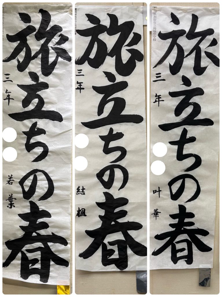 大賞3名、特選10名、入選11名、生徒たちのがんばりを報告いたします。