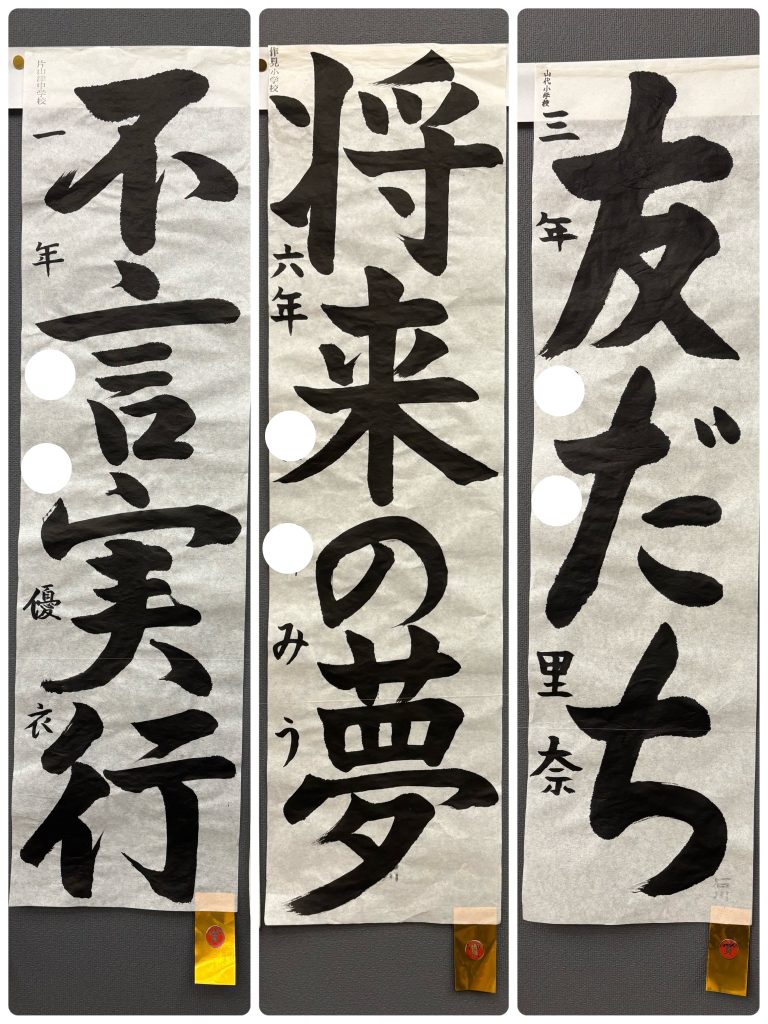 塾の生徒の作品が多数展示されていて、冬休み中にたくさん練習して本番に臨んだ様子が、文字から感じ取れました。